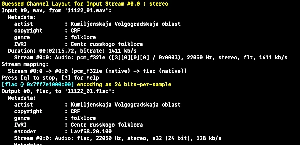 FFMPEG по умолчанию кодирует wav файлы в flac с исходной частотой дискретизации